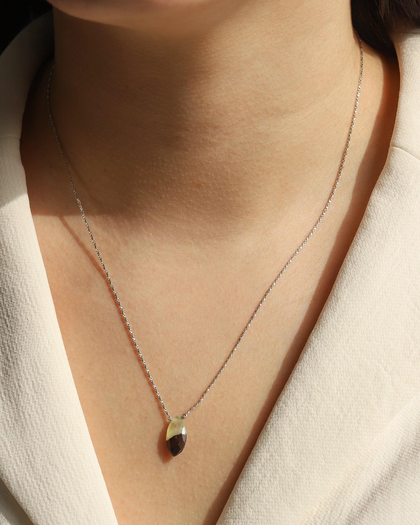 Green Opal Pear Box Chain Necklace