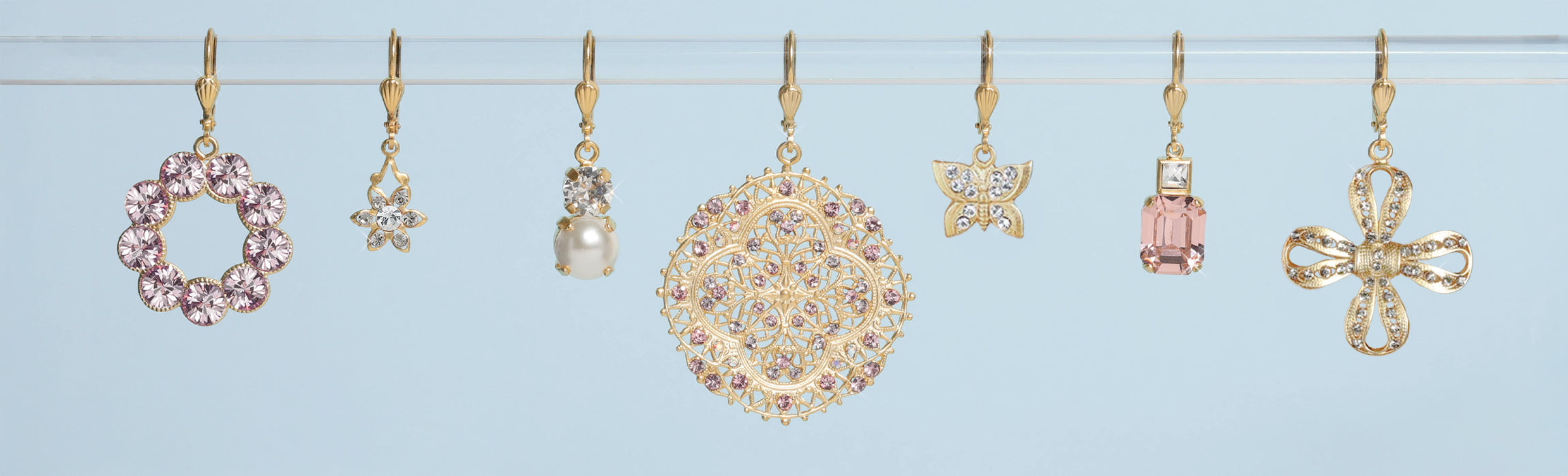 Graduated Round Crystal & Pearl Hooks
