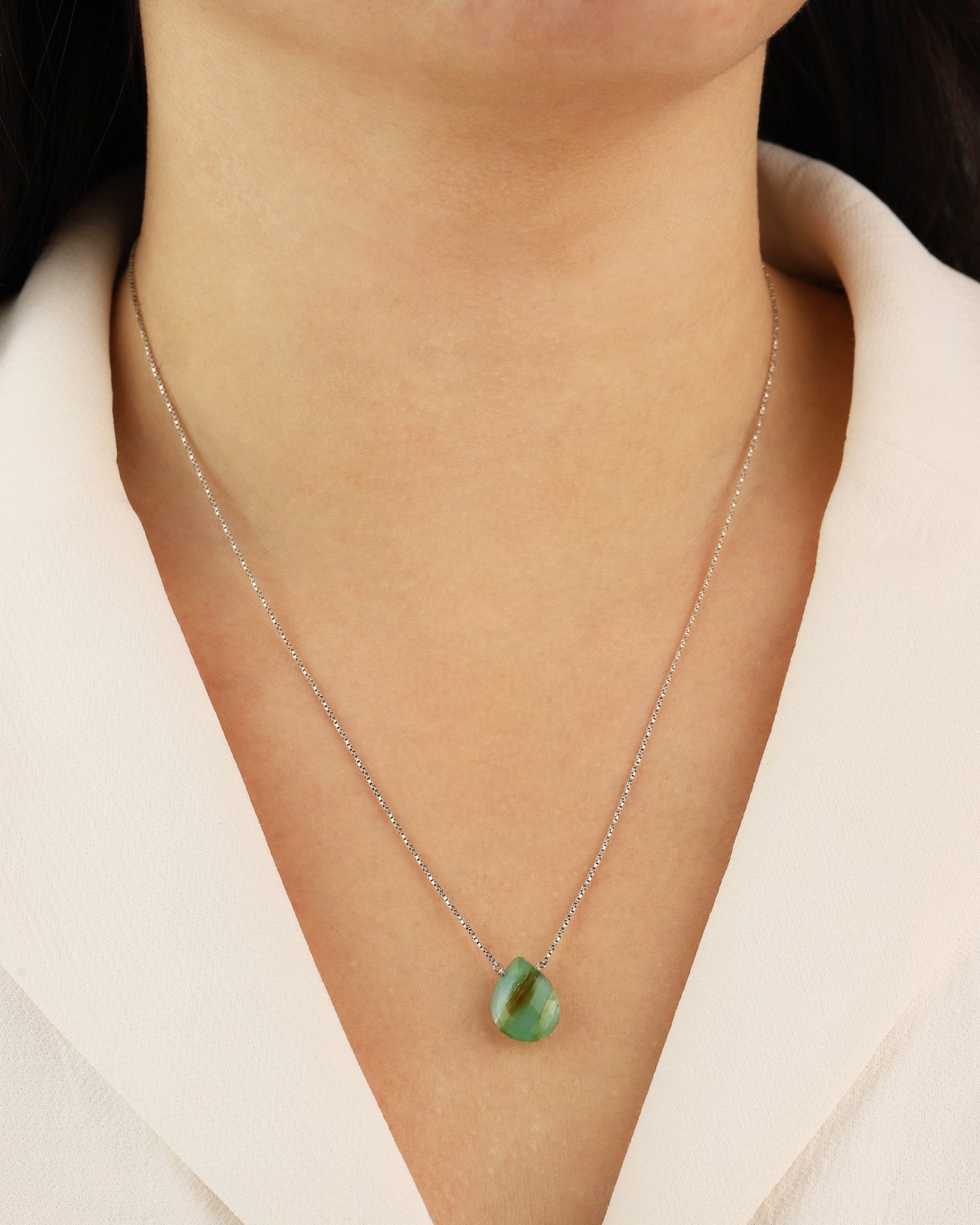 Chrysoprase Pear Box Chain Necklace