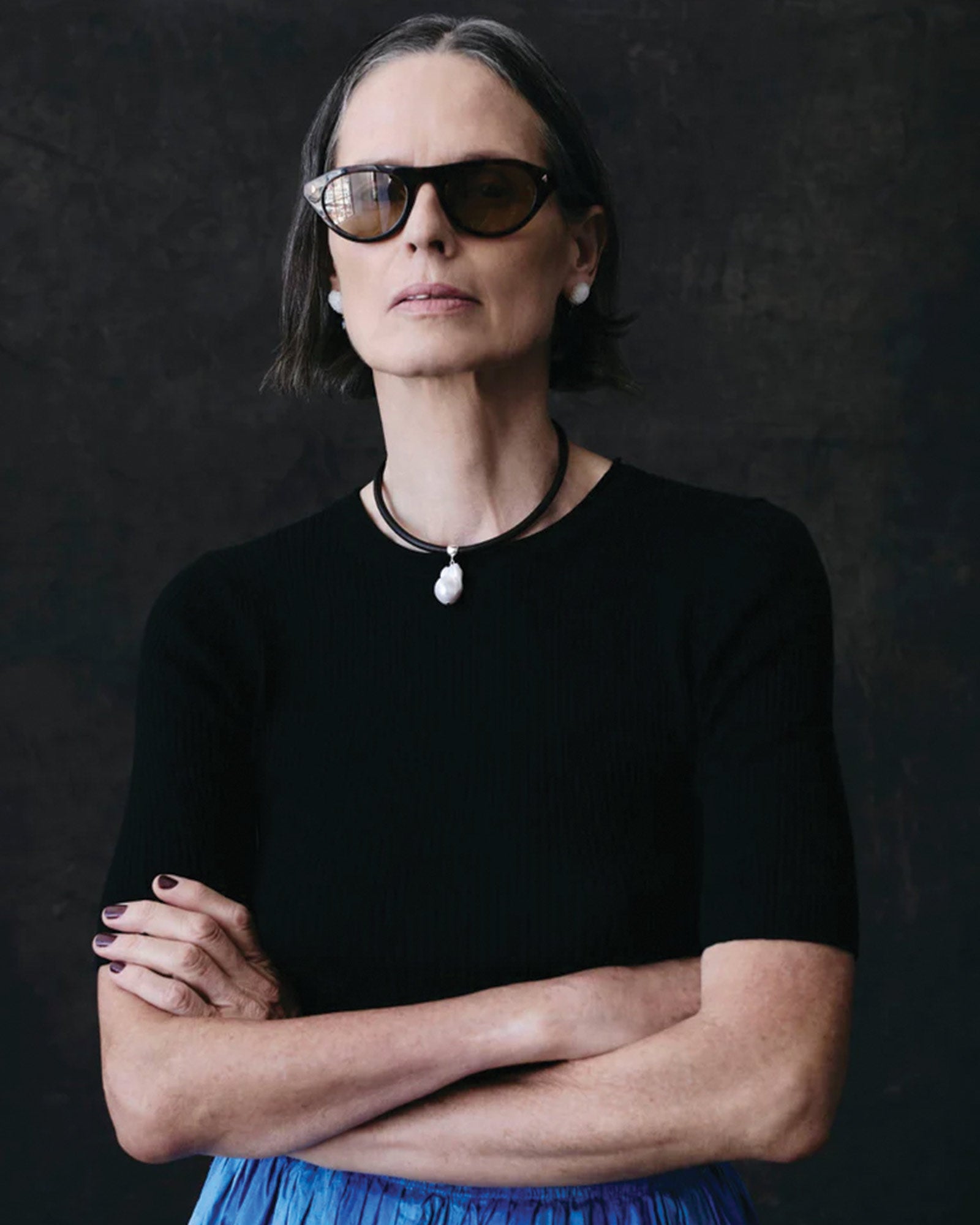 A reinterpretation of the classic pearl pendant, the Rosemary Necklace is an exploration of texture and light. The freshwater baroque pearl pendant is completely unique, reflecting the complex subtleties of nature. Silver tipped stitch leather cording grows softer and more supple with every wear.