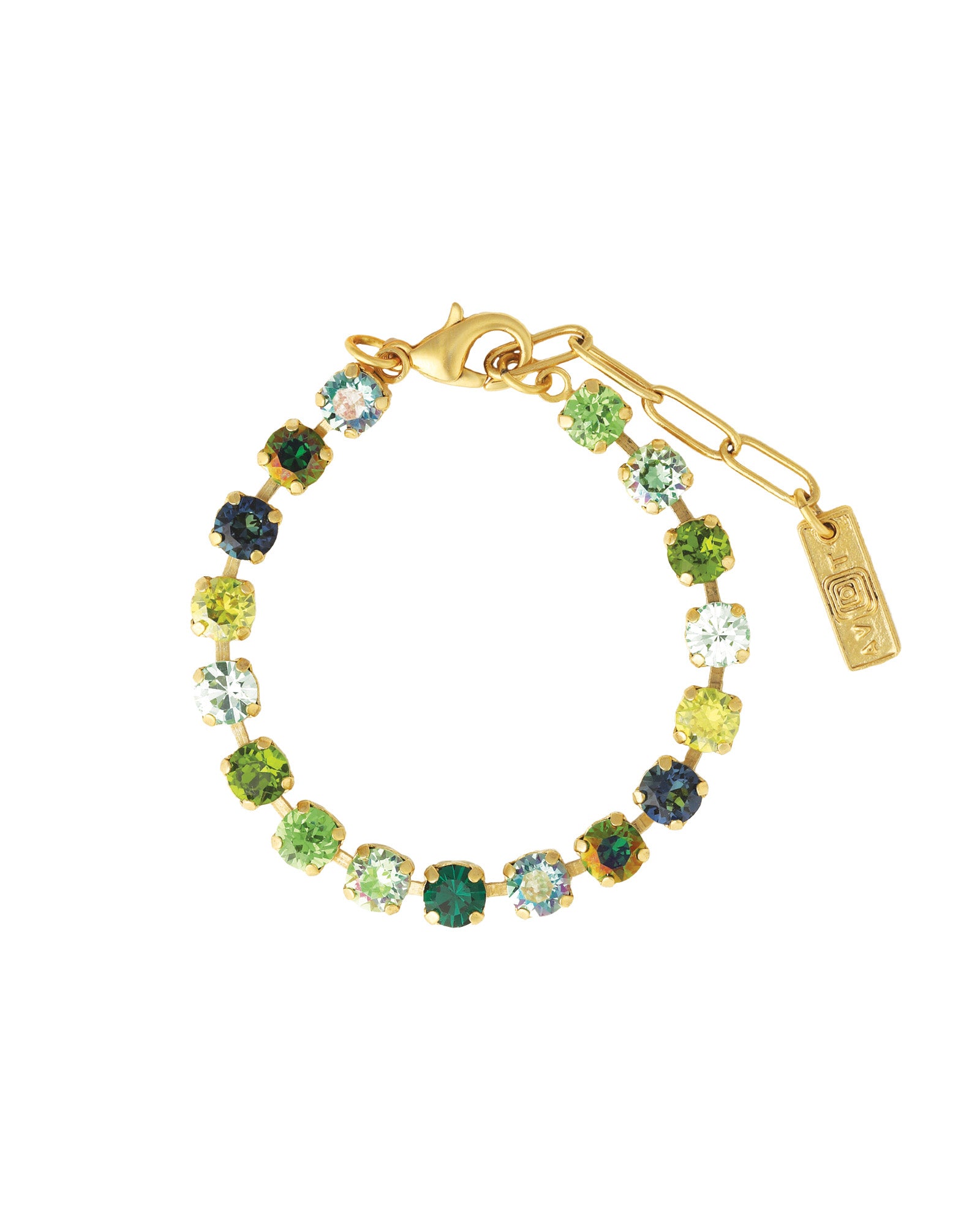 Simply sparkle! The Sarina Bracelet from TOVA is dazzling with its array of dazzling green crystals. Crafted from gold-plated brass, this piece brings a touch of subtle glamour to any outfit. Whether styled solo or stacked with other bracelets, this piece is designed to shine wherever you go.