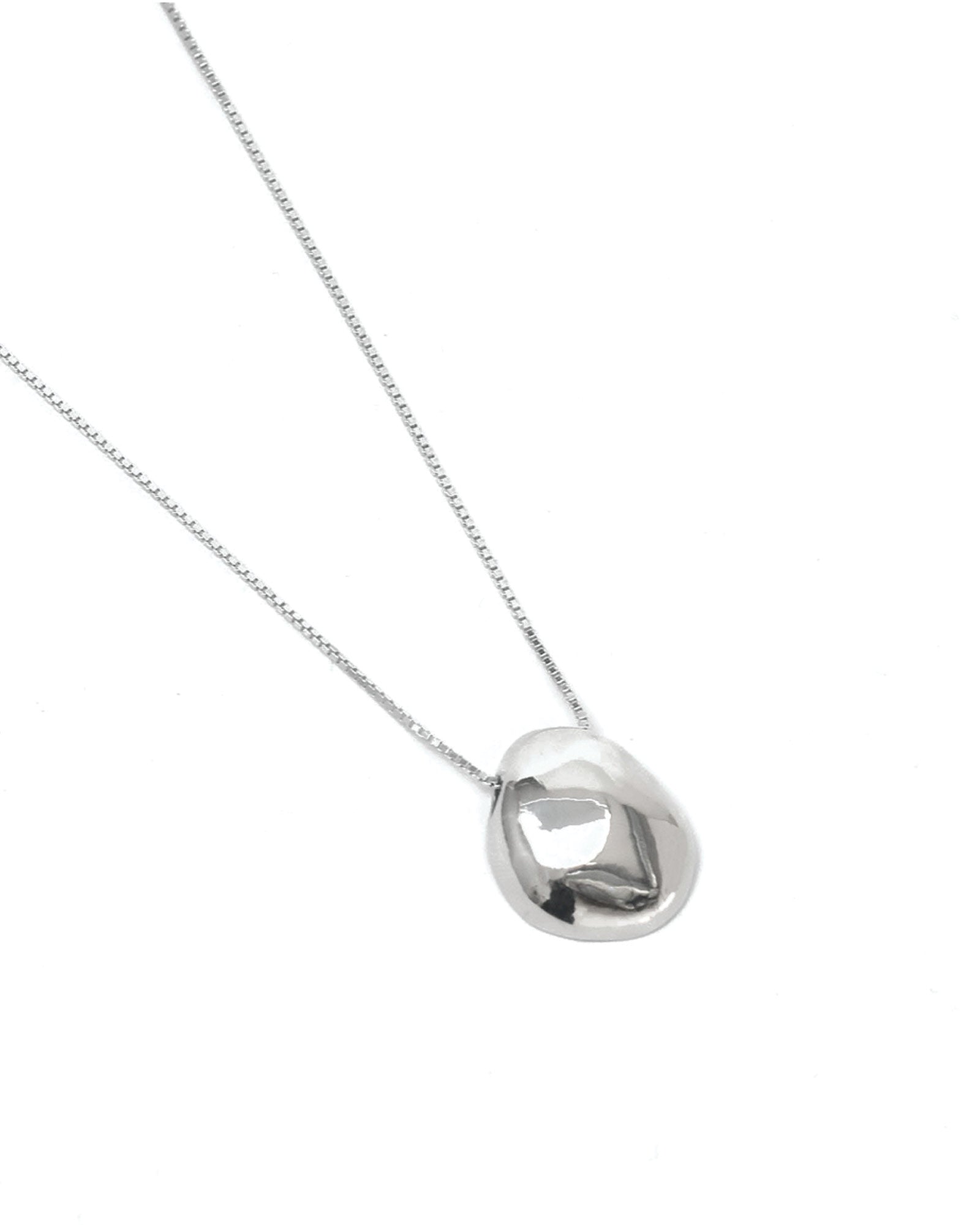 Inspired by natural forms, this pendant mimics the smooth, organic shape of a pebble. A versatile everyday piece that comes in two lengths.
